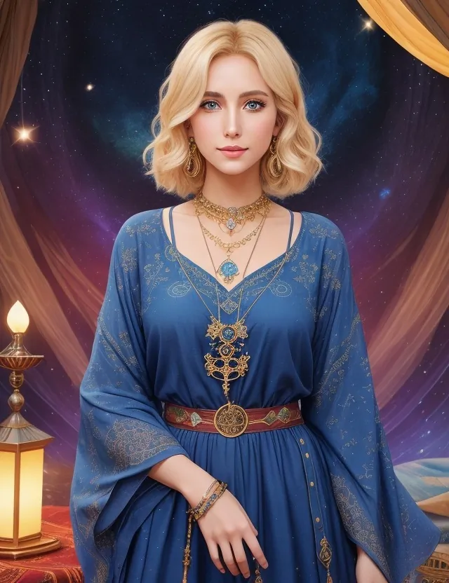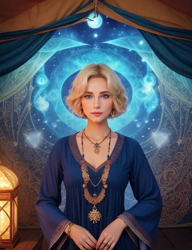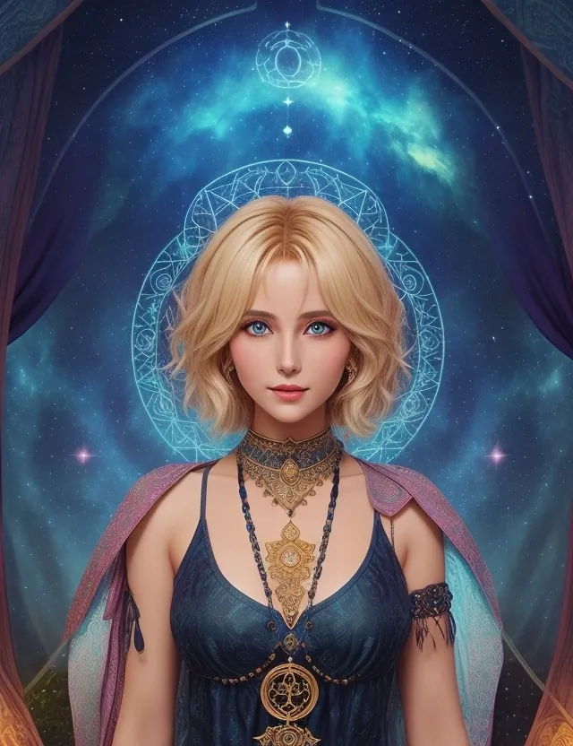 A spiritual explorer navigating the cosmos to find hidden truths and spiritual enlightenment.