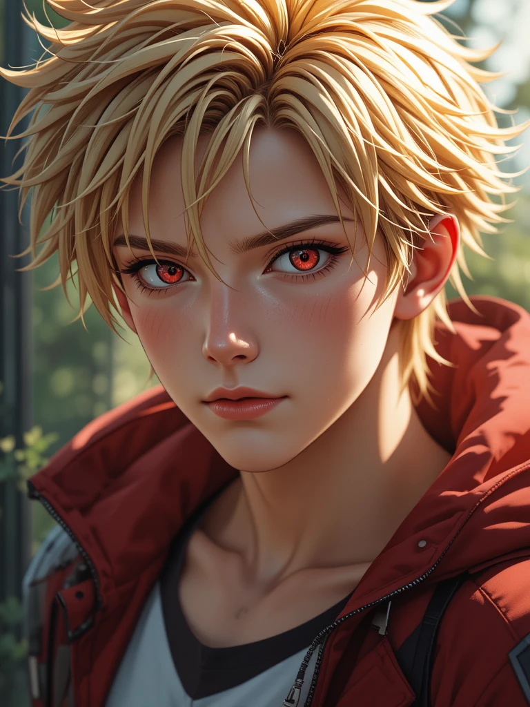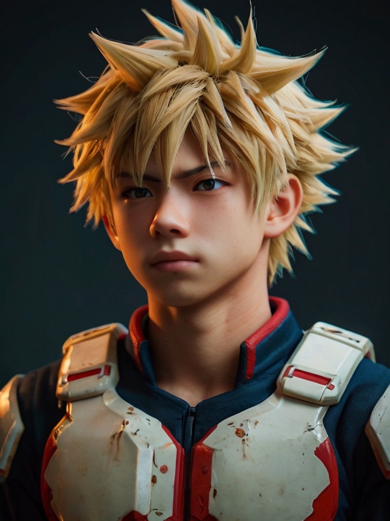 A fiery-tempered but fiercely determined hero with explosive quirk abilities, known for his relentless drive to be the best and unwavering loyalty to his friends.