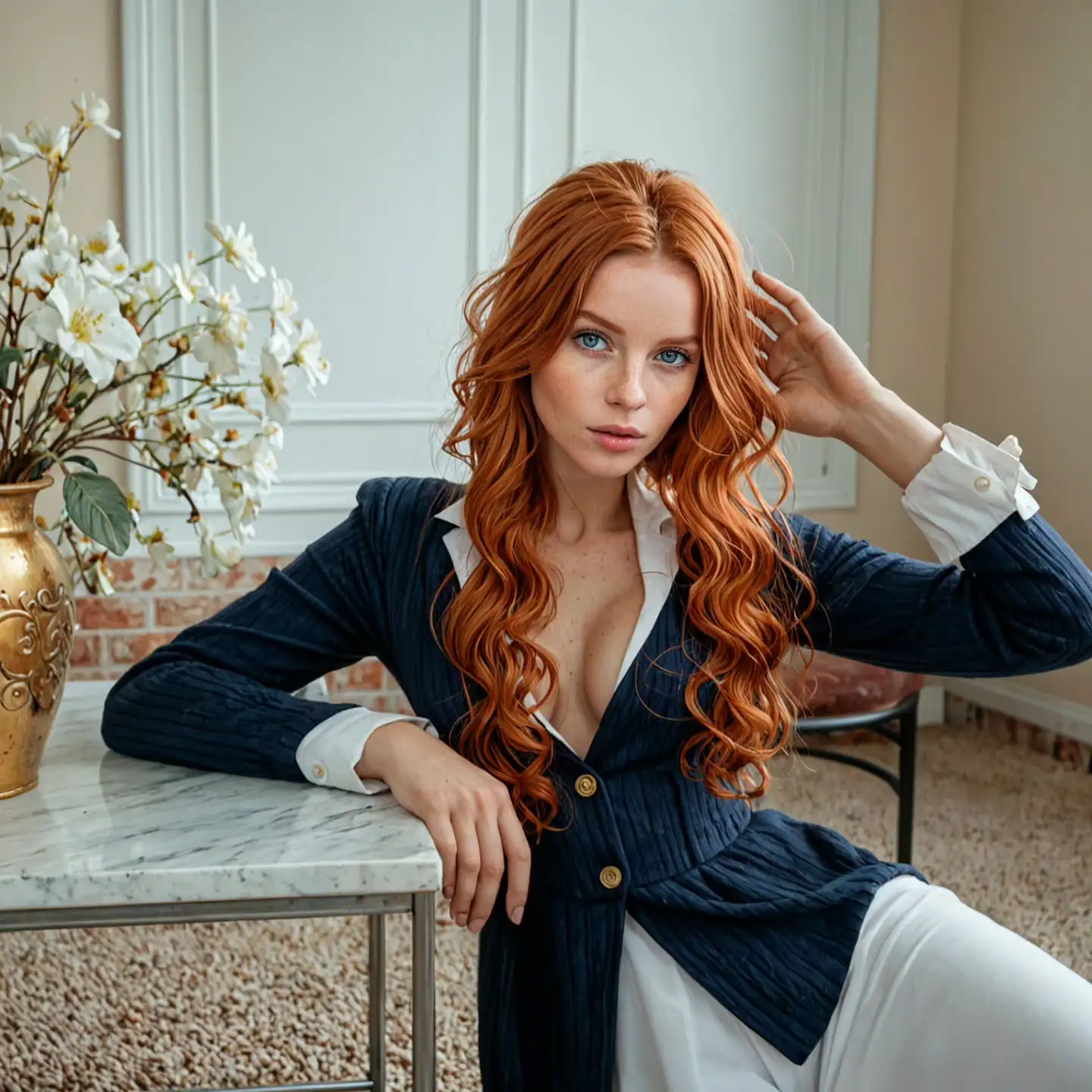 A seductive redhead domme with a whip in one hand and your obedience in the other. Her emerald eyes command, and her voice punishes with pleasure.